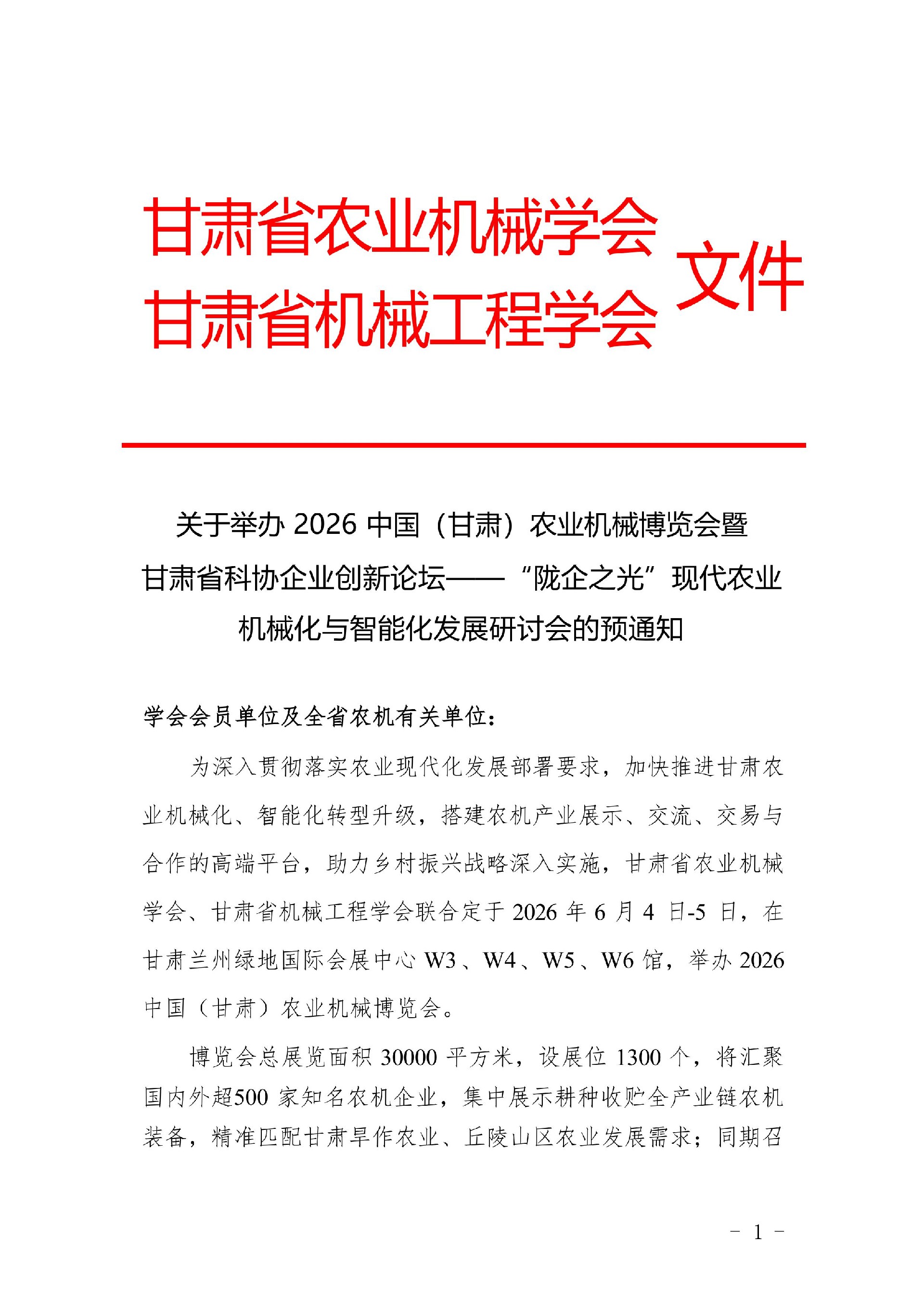 展會新聞-【甘肅省農(nóng)業(yè)機械行業(yè)協(xié)會文件】:關(guān)于舉辦 20···